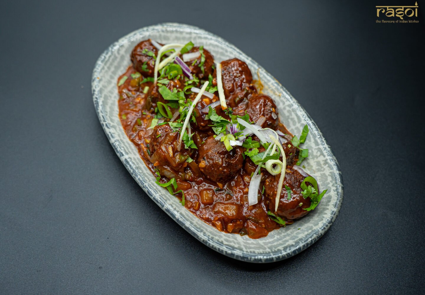 FRESH CHOPPED VEGETABLE BALLS COOKED IN INDO-CHINESE STYLE.